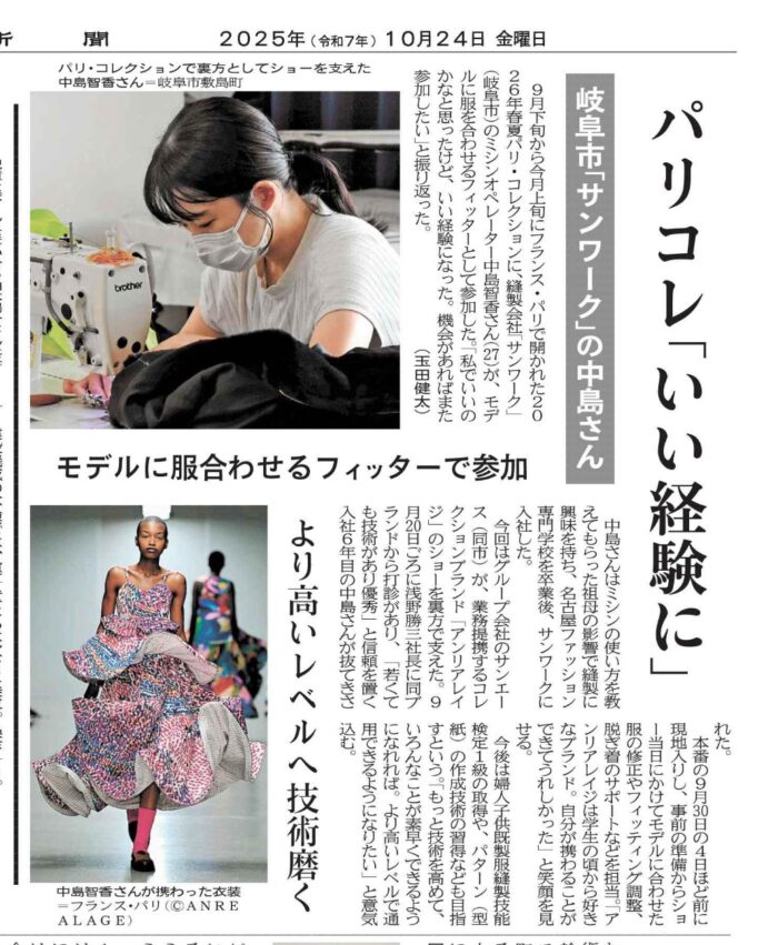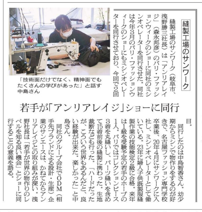 2025年9月下旬から10月上旬にフランス・パリで開催されたパリコレクションに、サンワークのミシンオペレーターが参加しました。今回もアンリアレイジさんのショーのお手伝いをさせて頂きました。